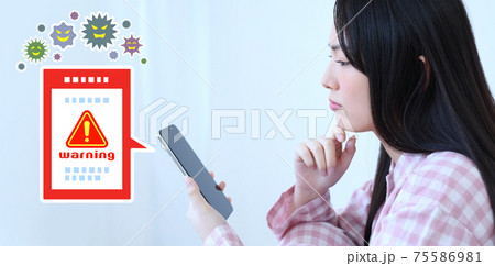 スマホがウイルスに感染して困る女性のイメージ