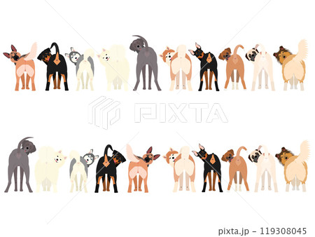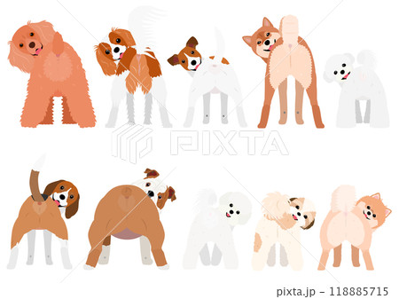 お尻を向けた犬のセット 小型犬と大型犬 カラー