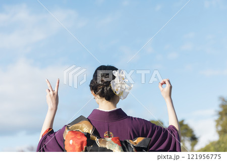 着物姿の女性後ろ姿 成人式イメージ
