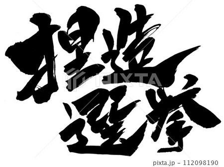 捏造選挙 ・・・筆文字素材の手書きの墨で書いたイラスト文字 文字 筆文字 手書き