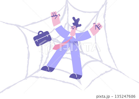 Trap for business man in form of cobweb symbolizes network of fraudsters want to steal money