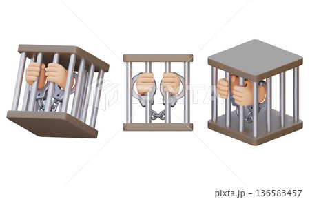 Hands holding prison bars. Sentenced behind jail cage bars, punishment for illegal action. Imprisonment arrest and deprivation of liberty. Prisoner, justice and criminal law concept 3D vector concept