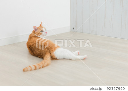 室内でくつろぐ三毛猫