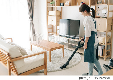 掃除 (清掃 掃除機 顔なし 女性 主婦 ボディパーツ ママ 家事 電化製品 ソファ リビング 手)