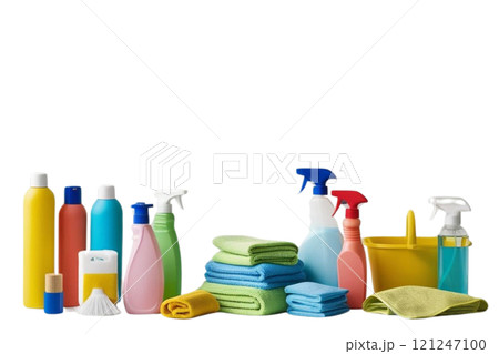 Assortment of Cleaning Supplies on isolate transparency background, PNG