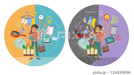 オフィスとプライベートでマルチタスクをこなす事務員女性のセット