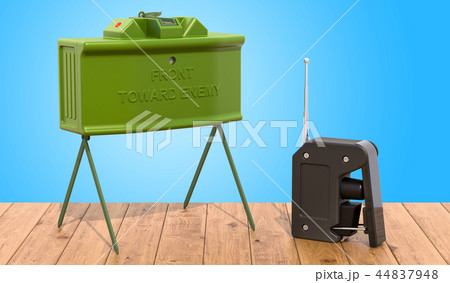 Anti-personnel mine on the wooden table