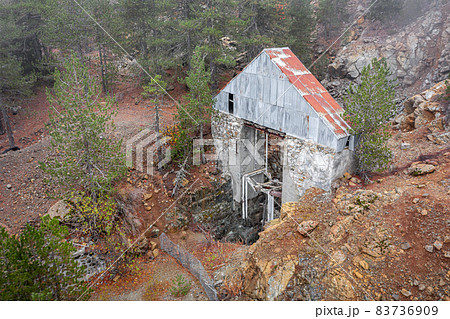 Abandoned chromite mine in Troodos mountains, Cyprus. Old broken lift over vertical shaft