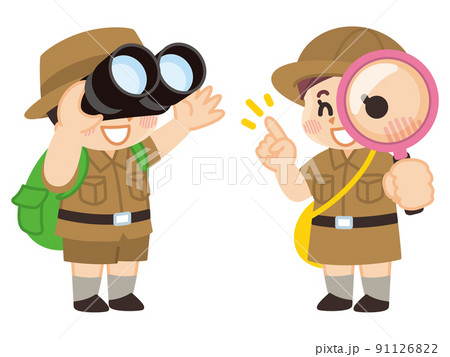 双眼鏡と探検隊の子供 ボーイスカウト 冒険 アウトドア