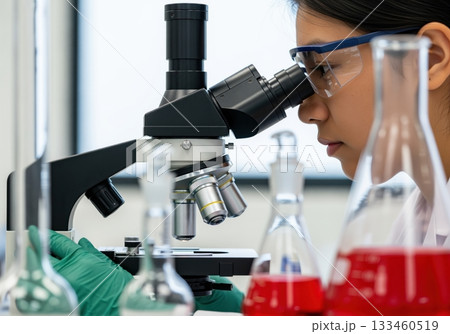 Scientists, beakers, and microscopes in cutting-edge research. Perfect for science and technology projects.