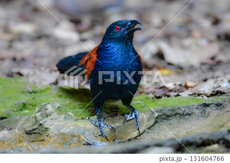 タイなど、東南アジアの熱帯雨林で見られる黒い森林性の鳥、クロラケットオナガ
