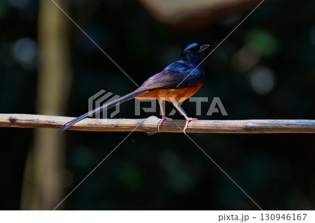タイなど、東南アジアの熱帯雨林で見られる白黒とオレンジの羽色が美しい小鳥アカハラシキチョウ