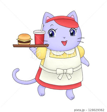 ネコのハンバーガーショップ店員のイラスト