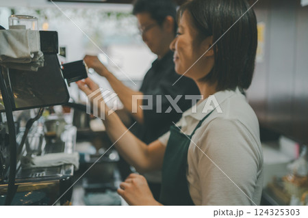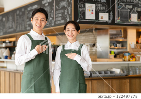 カフェで働くミドルの男女