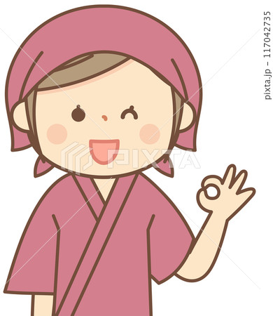 オッケーサインをする和食料理屋の女性