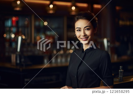 居酒屋で働く若い女性