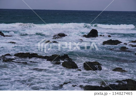水平線・海の向こう・空と海の間・青バック・真っ青・気象・自然・海洋・海外・クルーズ・外敵・襲来