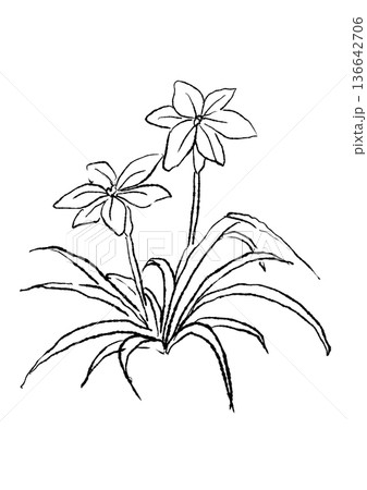 咲き誇るヒメシャガの花の手描きの線画イラスト
