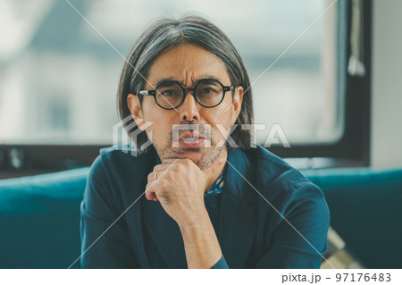 考えるスーツの男性