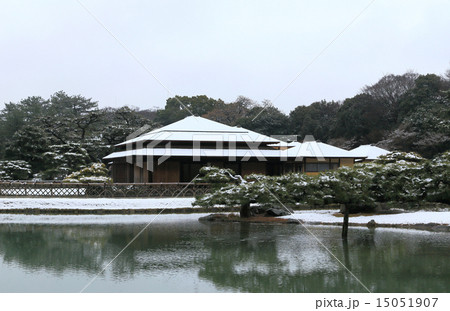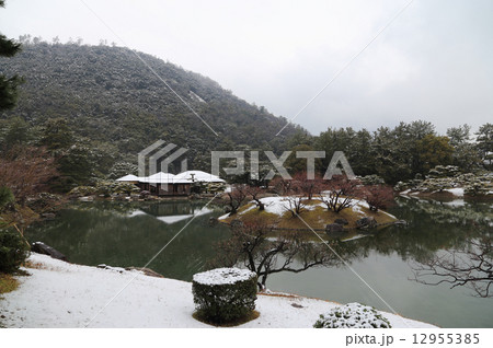 特別名勝「栗林公園」掬月亭の掬月から眺める南庭南湖の冬景色