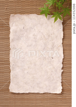 和紙と青紅葉の背景素材