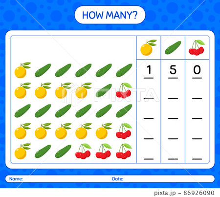 How many counting game with fruit. worksheet for preschool kids, kids activity sheet, printable worksheet