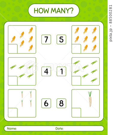 How many counting game with jicama. worksheet for preschool kids, kids activity sheet, printable worksheet