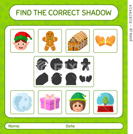 Find the correct shadows game with christmas icon. worksheet for preschool kids, kids activity sheet