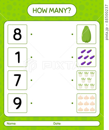 How many counting game with garlic. worksheet for preschool kids, kids activity sheet, printable worksheet