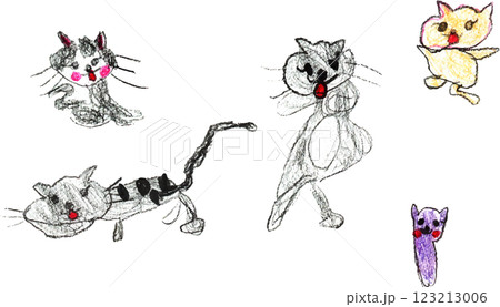 子供の描いた絵。なんだろう?犬のように見えるけど。気合いが入ってる表情。