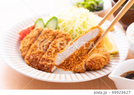 トンカツを食べる