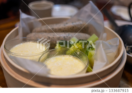 Gyeran-mari or rolled omelette in Korean cuisine is a savory banchan (side dish) made with beaten eggs mixed onion, carrot, Korean zucchini, scallions, and garlic chives. Similiar with tamagoyaki