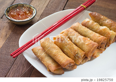 Fried Spring rolls food on wood background