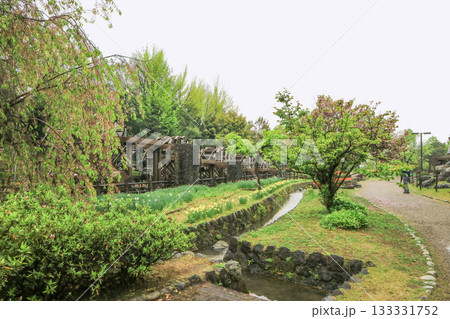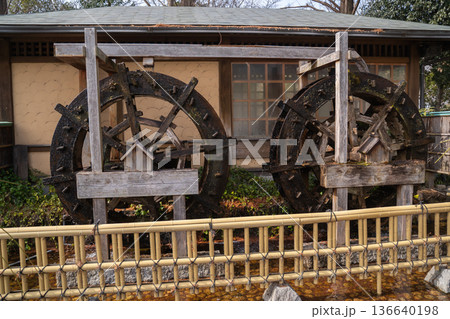 日本の公園にある水車小屋