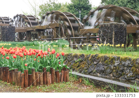 五連揚水水車 砺波 チューリップ公園 砺波市 富山県