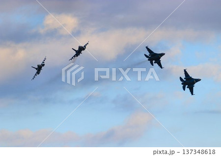 首都防空の要『百里基地』の上空を編隊飛行するF-2ジェット戦闘機