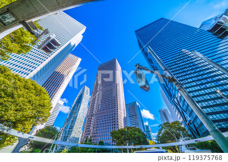 日本の東京都市景観 新宿副都心…。東京モード学園コクーンタワーなど超高層ビルを望む