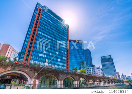 日本の東京都市景観 万世橋からマーチエキュートや太陽光などを望む(右奥は御茶ノ水駅方向)