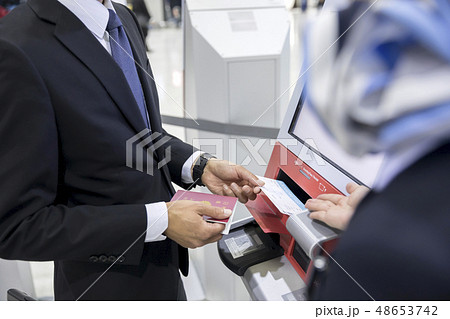 ビジネスイメージ 自動チェックイン機で搭乗手続きをするビジネスウーマン