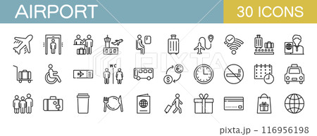 旅行シリーズ13 海外旅行 カラーラインアイコンのセット