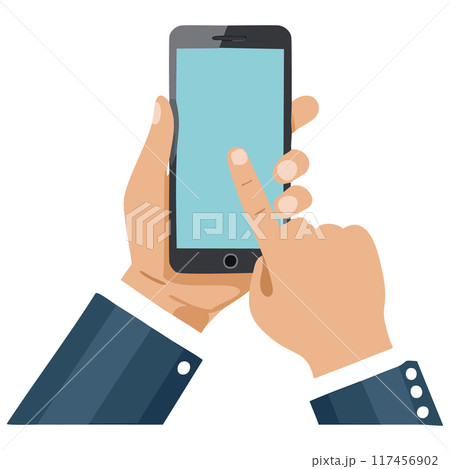 左手でスマホを持ち、右手で操作するシンプルなイラスト