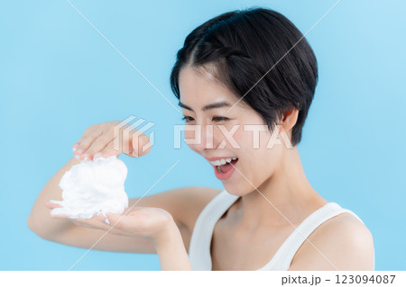 泡を手に持つ美容イメージ