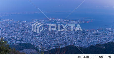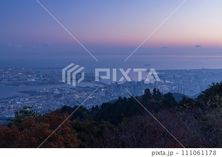 日本 兵庫県神戸市の摩耶山の掬星台展望台から眺める神戸の夕方の街並み