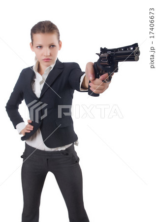Woman businesswoman with gun on white