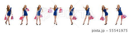 Beautiful lady in dark blue dress isolated on white