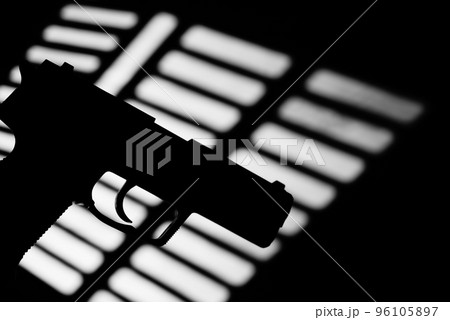 Silhouette of a mans hand with a handgun