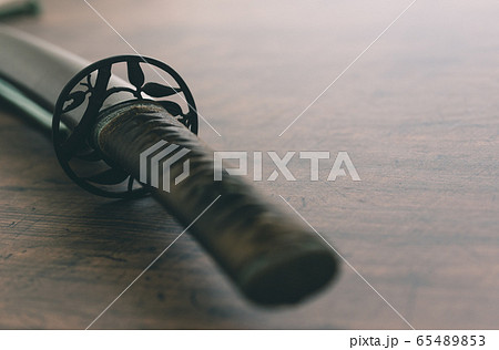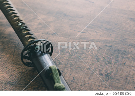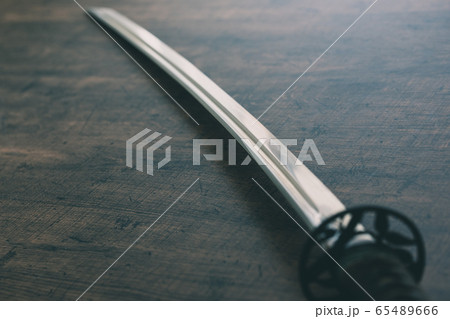 sword steel blade samurai ancient on old wooden