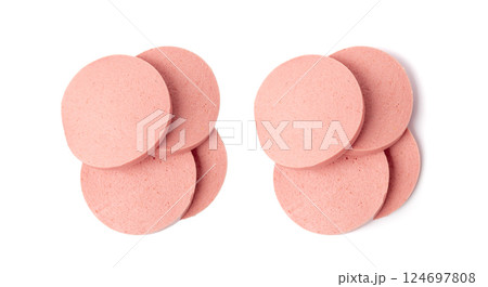 Mortadella Slice Isolated, Luncheon Meat Cut, Chicken Ham, Boiled Sausage for Breakfast