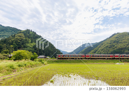 播但線の特急列車と田舎風景 (兵庫県朝来市)