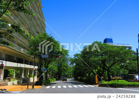 新緑が美しい文京区の播磨坂(グリーンベルトの遊歩道)